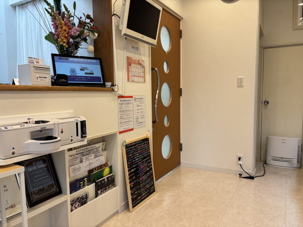 ↑待合室の長椅子前に置いてあります。待ち時間にお読みいただけたら幸いです。
