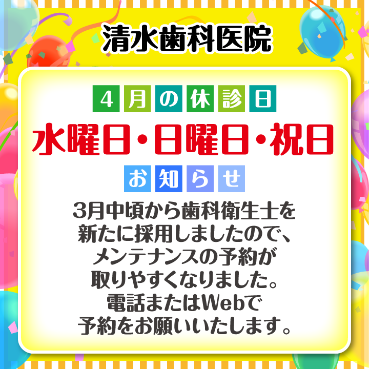 受付終了時間:月〜金18:00、土12:30 ▲9:00-13:00 ※水曜、日曜、祝日は休診になります